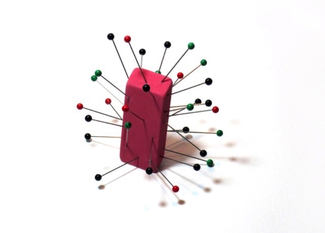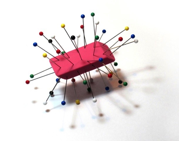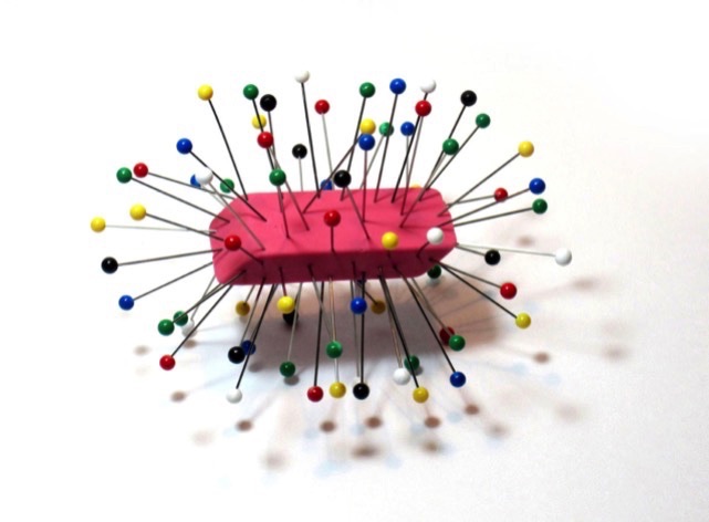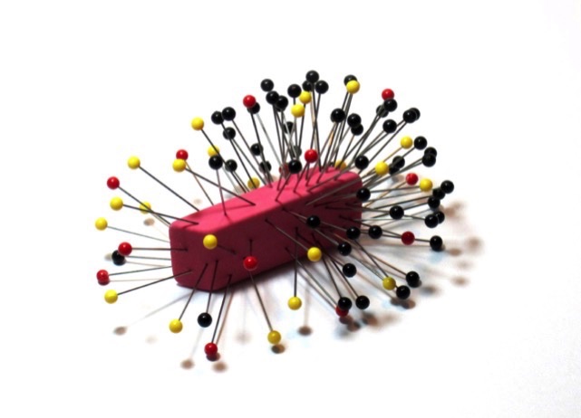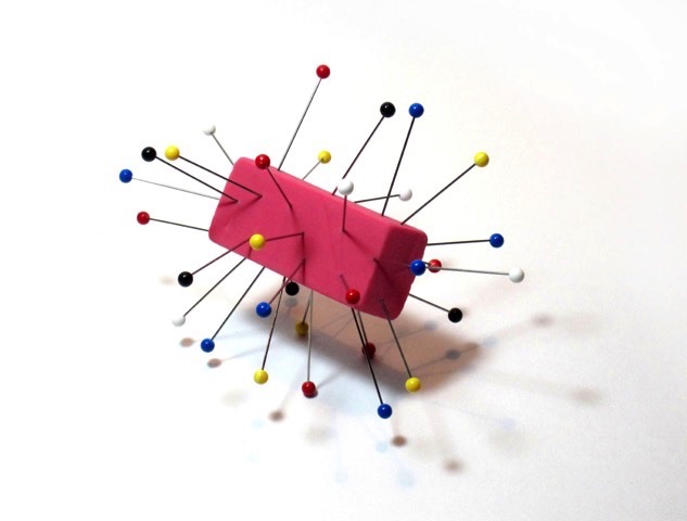 Acts of Immobilization No. 1, 2009, eraser, colorball pins, 3" x 4.5" x 3.5"