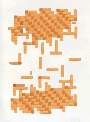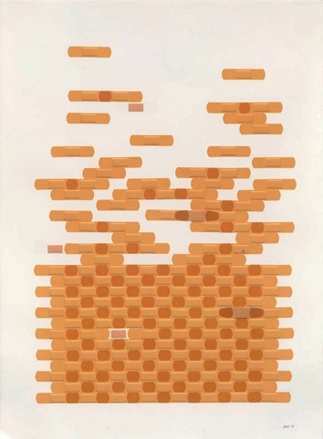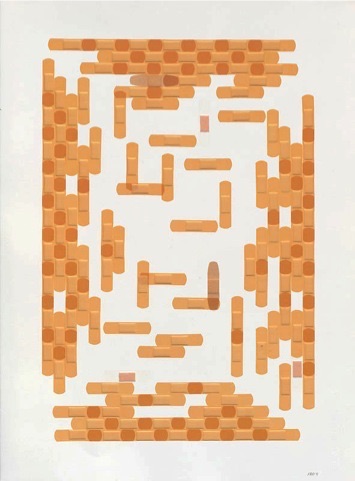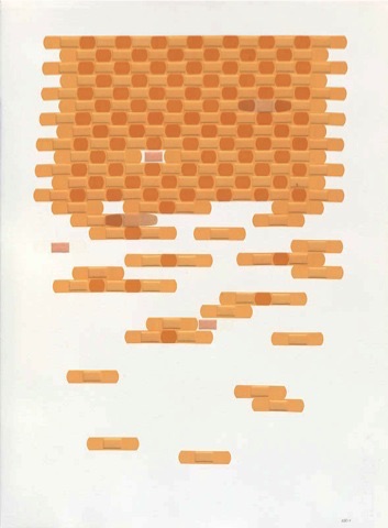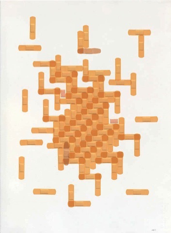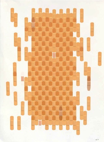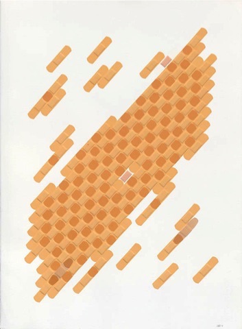 Embrace/Reject V, 2011, sheer and clear adhesive bandages on paper, embroidery, 30"x 22.5"