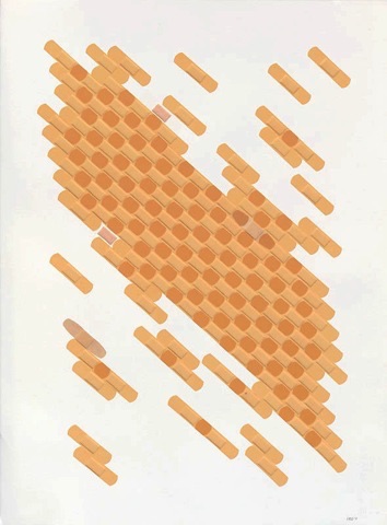 Embrace/Reject II, 2010, sheer and clear adhesive bandages on paper, embroidery, 30"x 22.5"