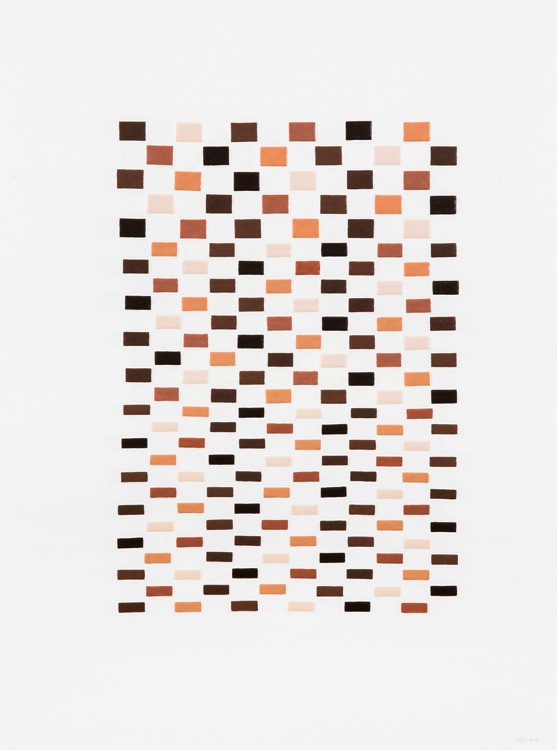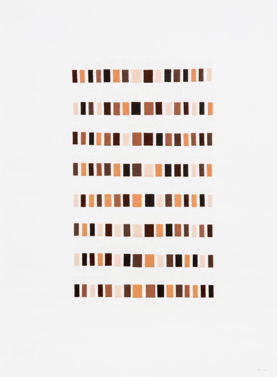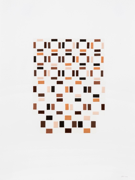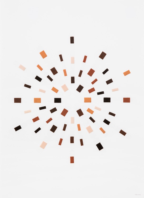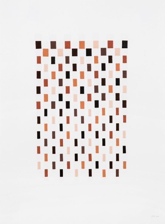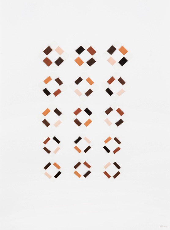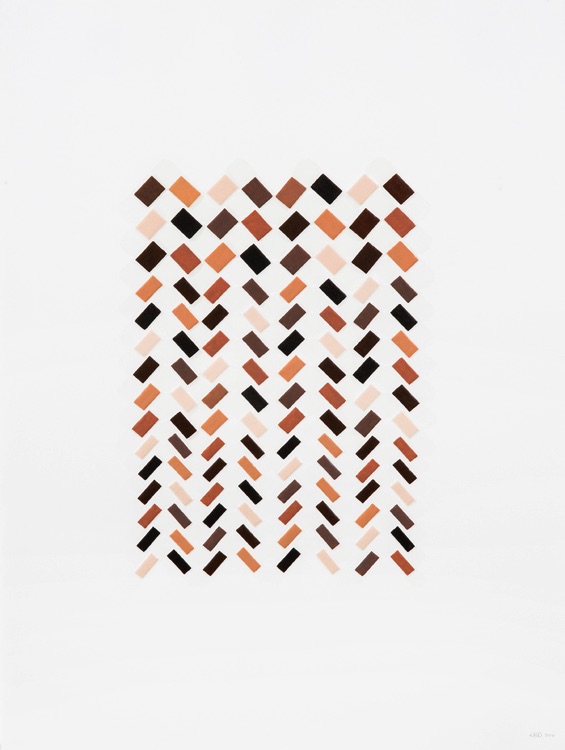 We V, 2016, acrylic, clear adhesive bandages on paper, 30"x 22"